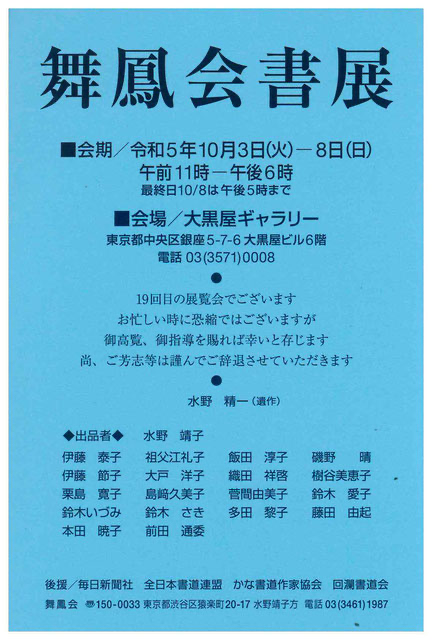 ◆後援:毎日新聞社 全日本書道連盟 かな書道作家教会 回瀾書道会
